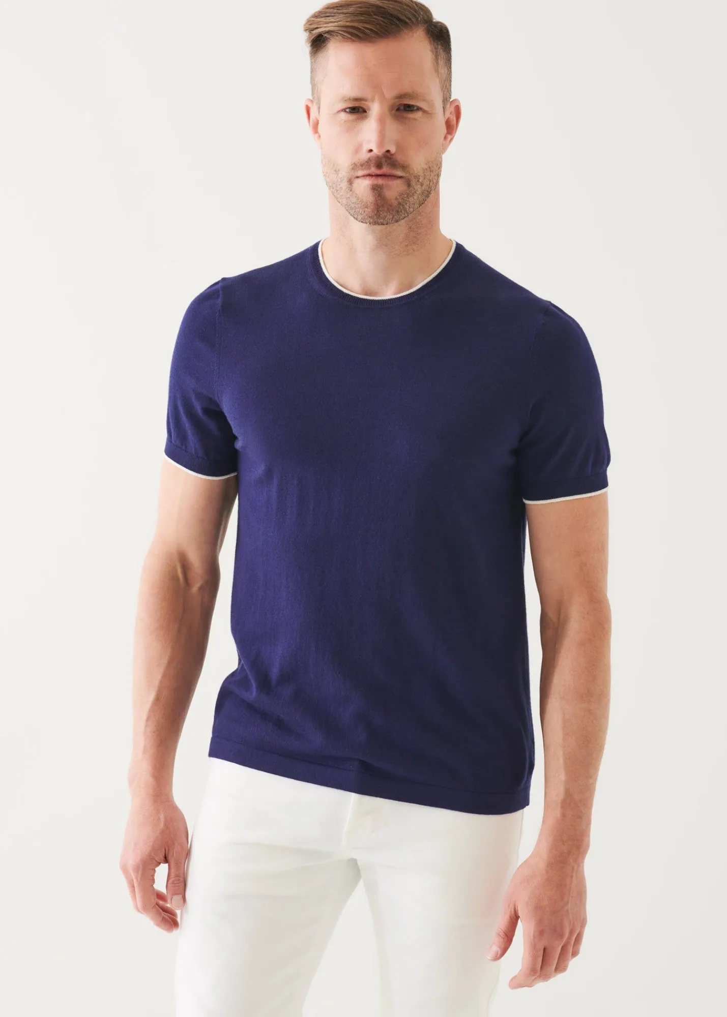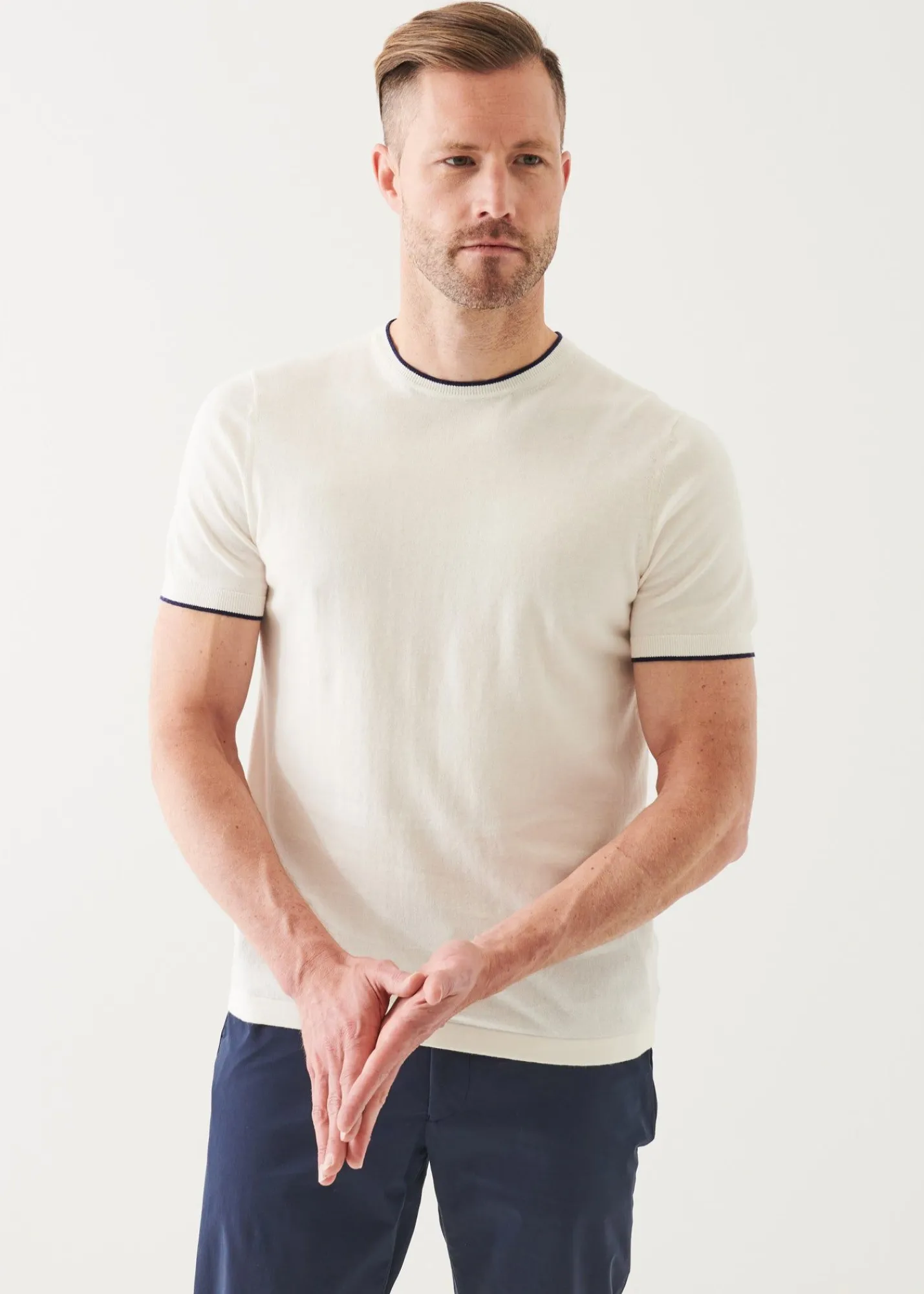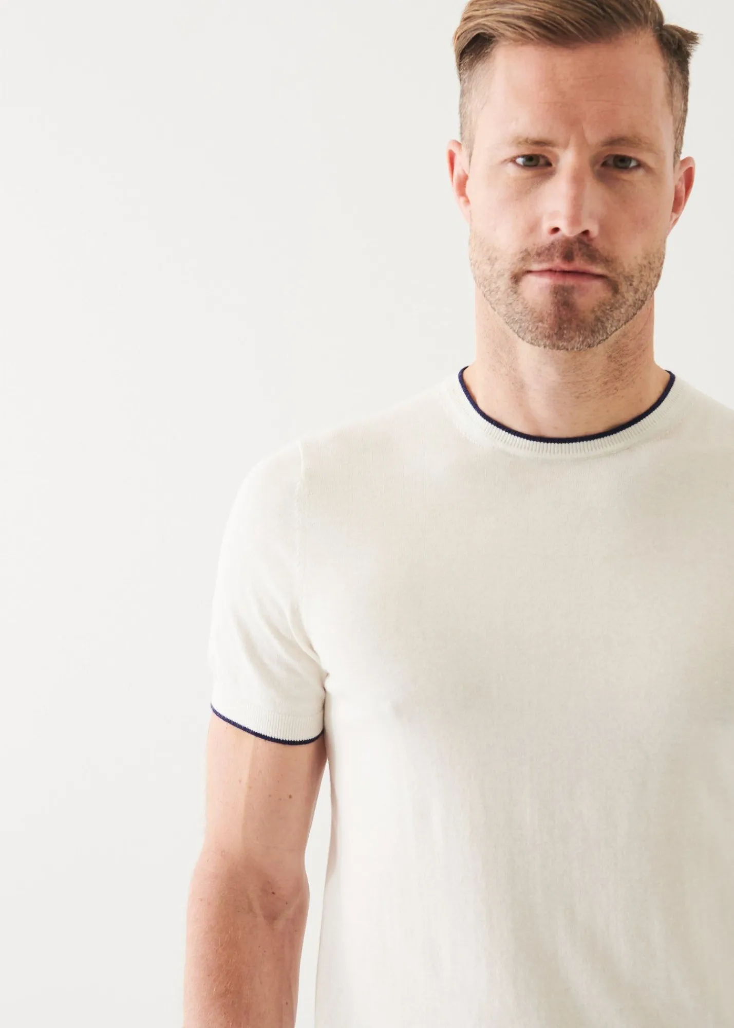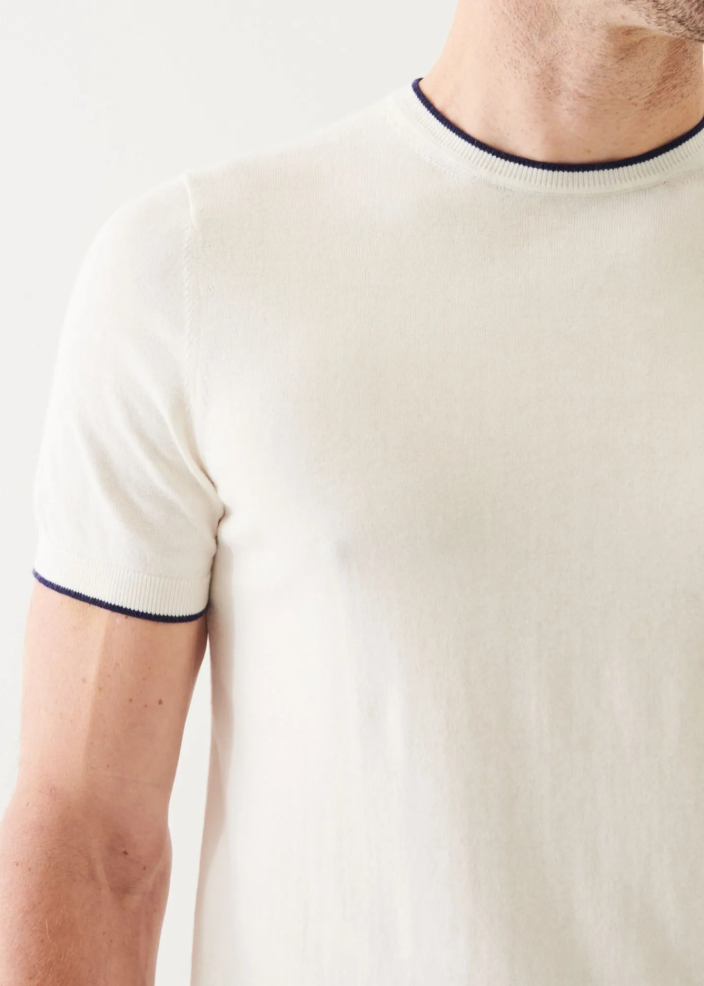 This Nautical Inspired Knit T-Shirt Is Expertly Crafted From A High Quality Cotton-Cashmere Yarn And Offers A Luxuriously A Soft And Silky Feel. It Is Detailed With Fine Contrast Tipping At The Collar And Cuffs And Is Cut For A Slim Modern Fit.