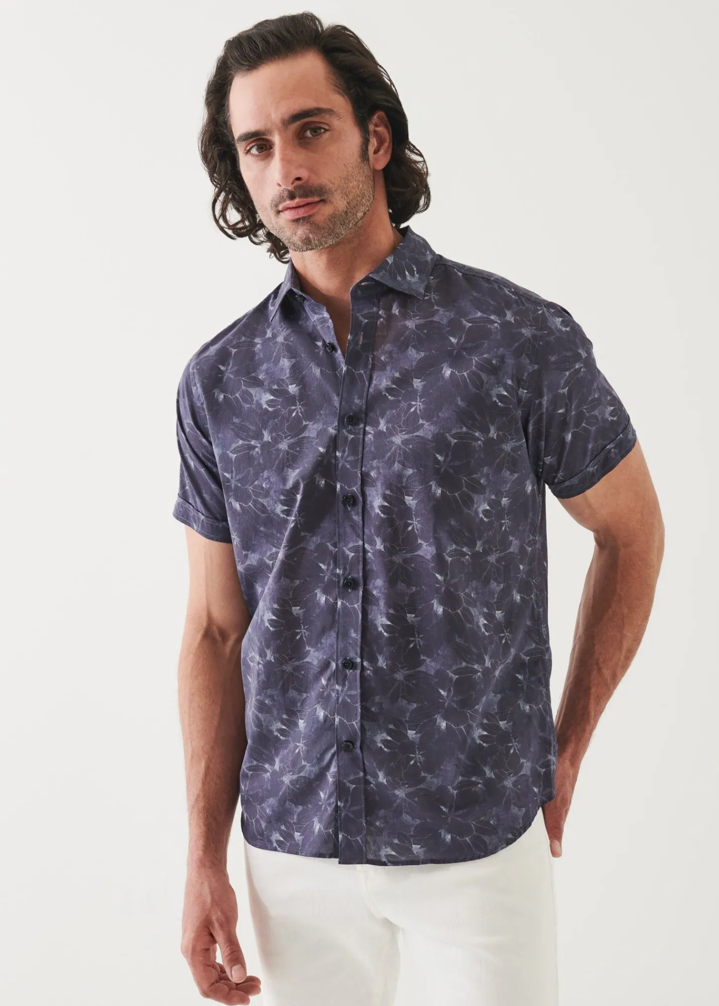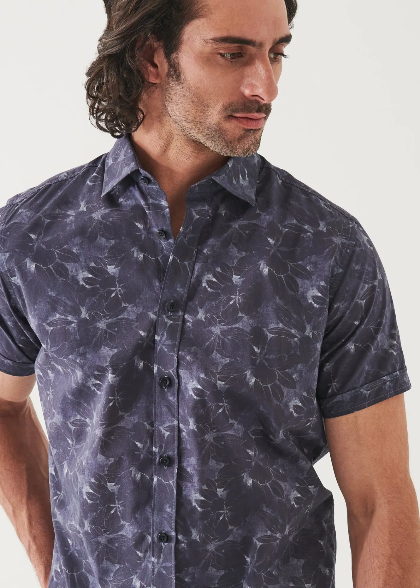 PATRICK ASSARAF Faded Floral Print Cotton Short Sleeve Shirt | Men Shirts