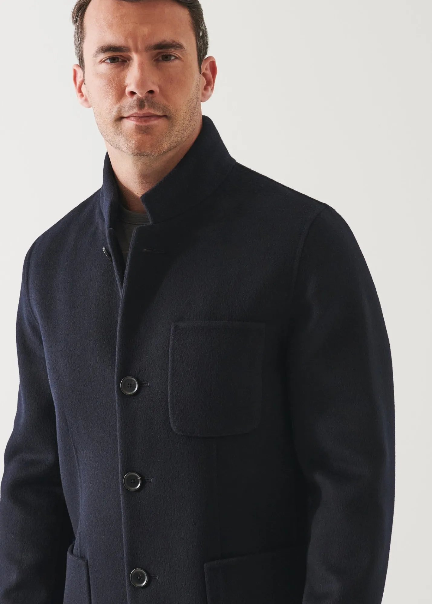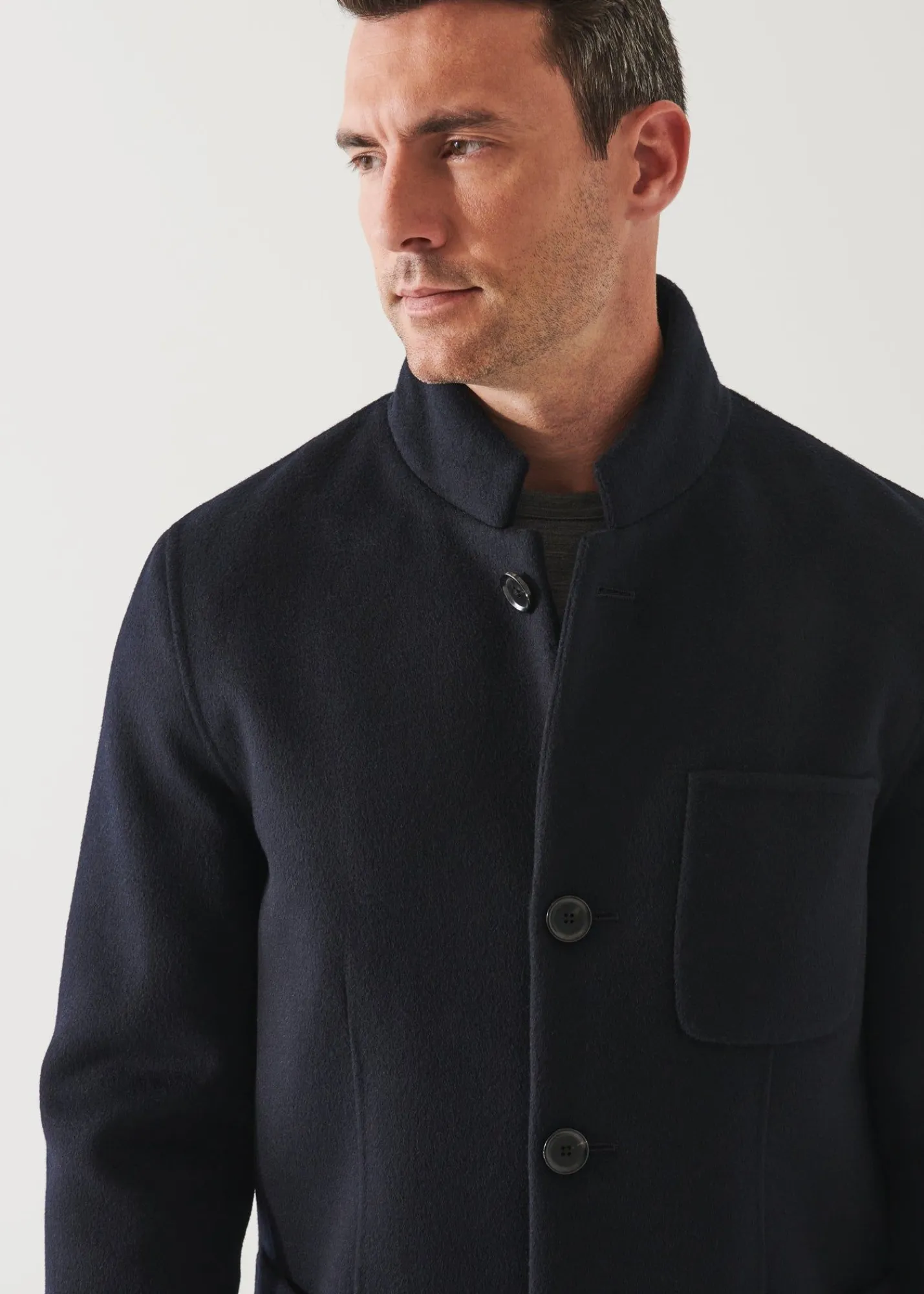 This ‘Hybrid’ Jacket Is Expertly Crafted From A Warm, Luxurious Wool And Cashmere Fabric And Designed With A Stand-Up Collar And Three-Patch Pockets. It Is Made In A Double-Face Construction Which Hides The Stitching And Creates Clean Elevated Seams. It Is A Perfect Transitional Weather Piece, Ideal For Seasonal Easy Layering. Pair With Our Seasonal Merino Wool Or Cashmere Knitwear.
