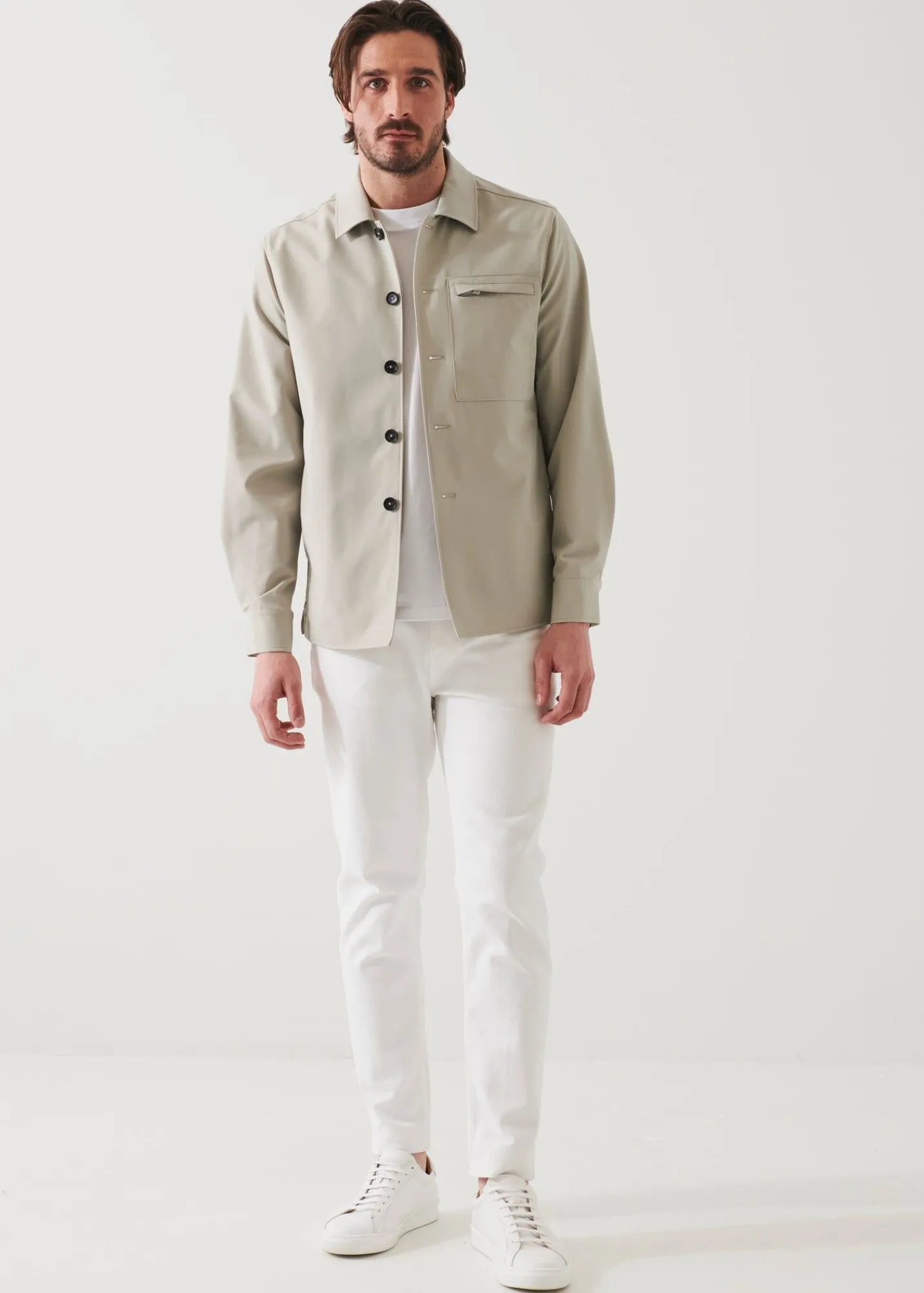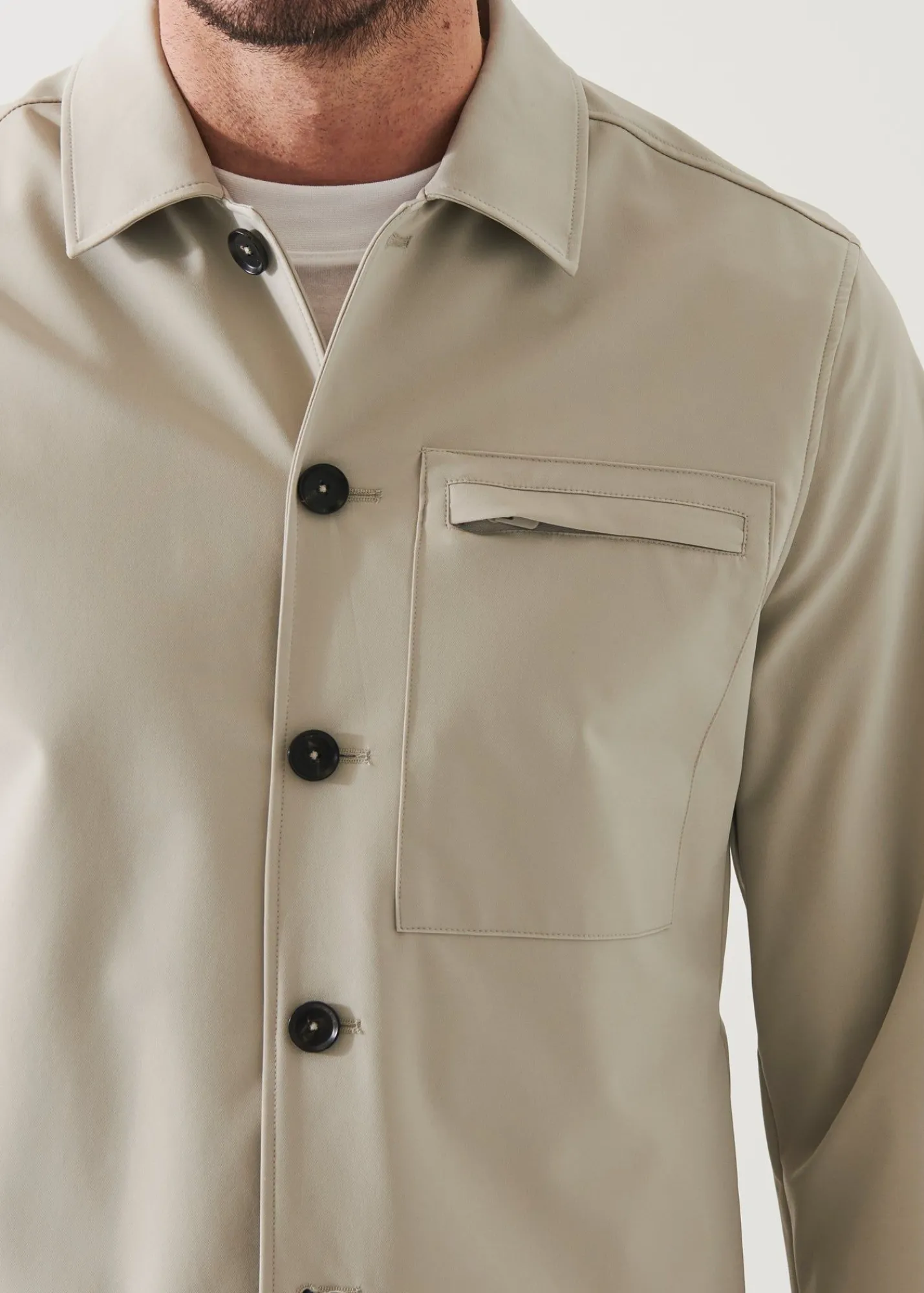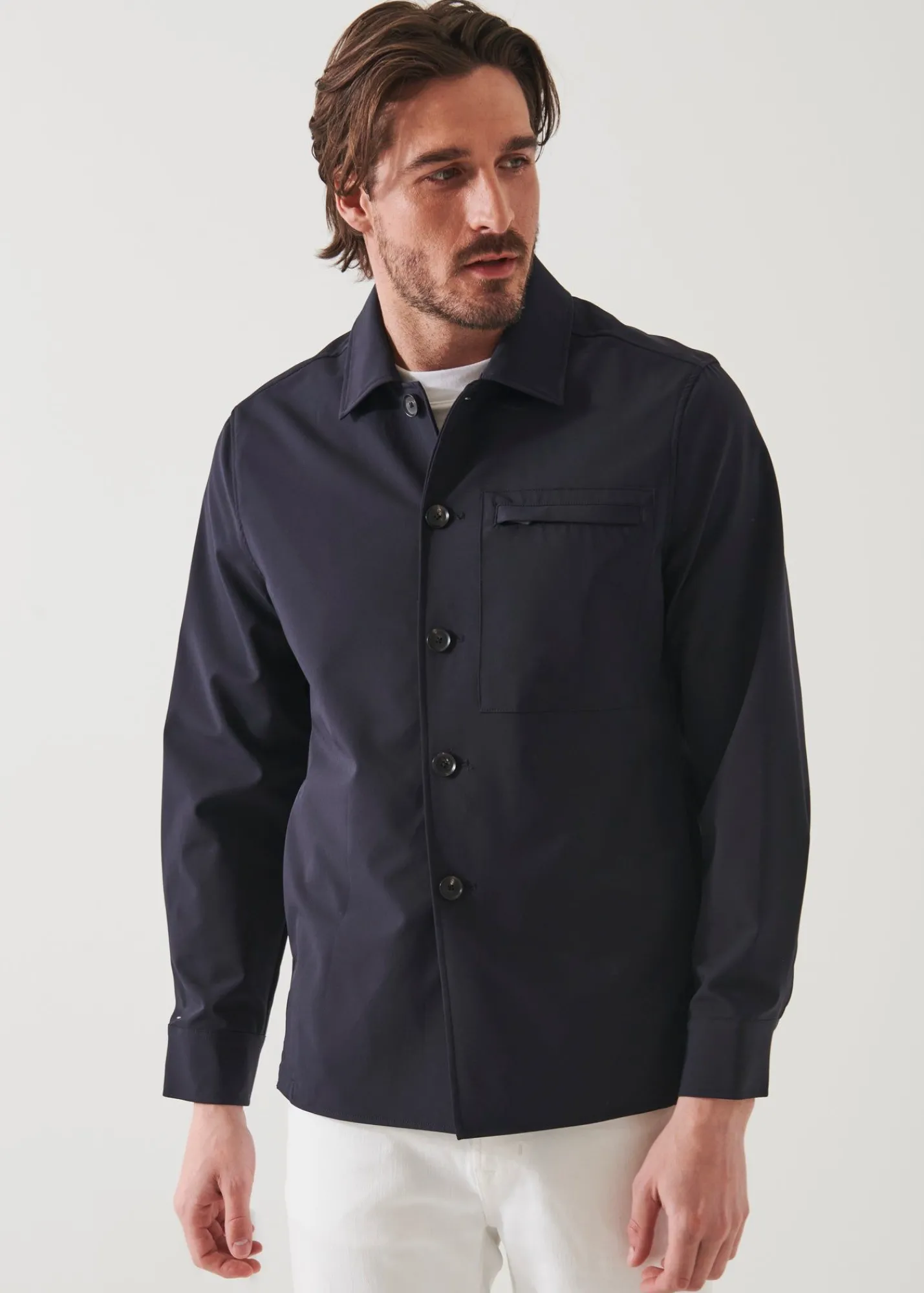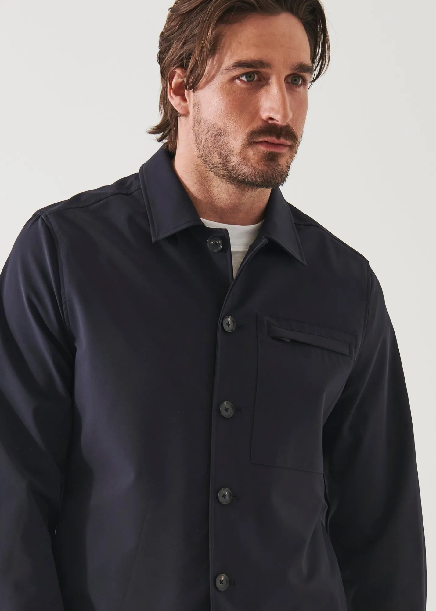 This Stylish Shirt Jacket From Our Nucleo Collection Stands Out For Its Innovative Nylon Stretch Fabric. It Offers Impressive Elasticity, Comfort, Breathability And Crease Resistance. It Features Practical Side Entry Pockets, A Zip Patch Chest Pocket, Interior Pockets And Adjustable Button Sleeve Cuffs. A Highly Versatile Piece That Can Be Styled To Create A Vast Assortment Of Stunning Seasonal Outfits.