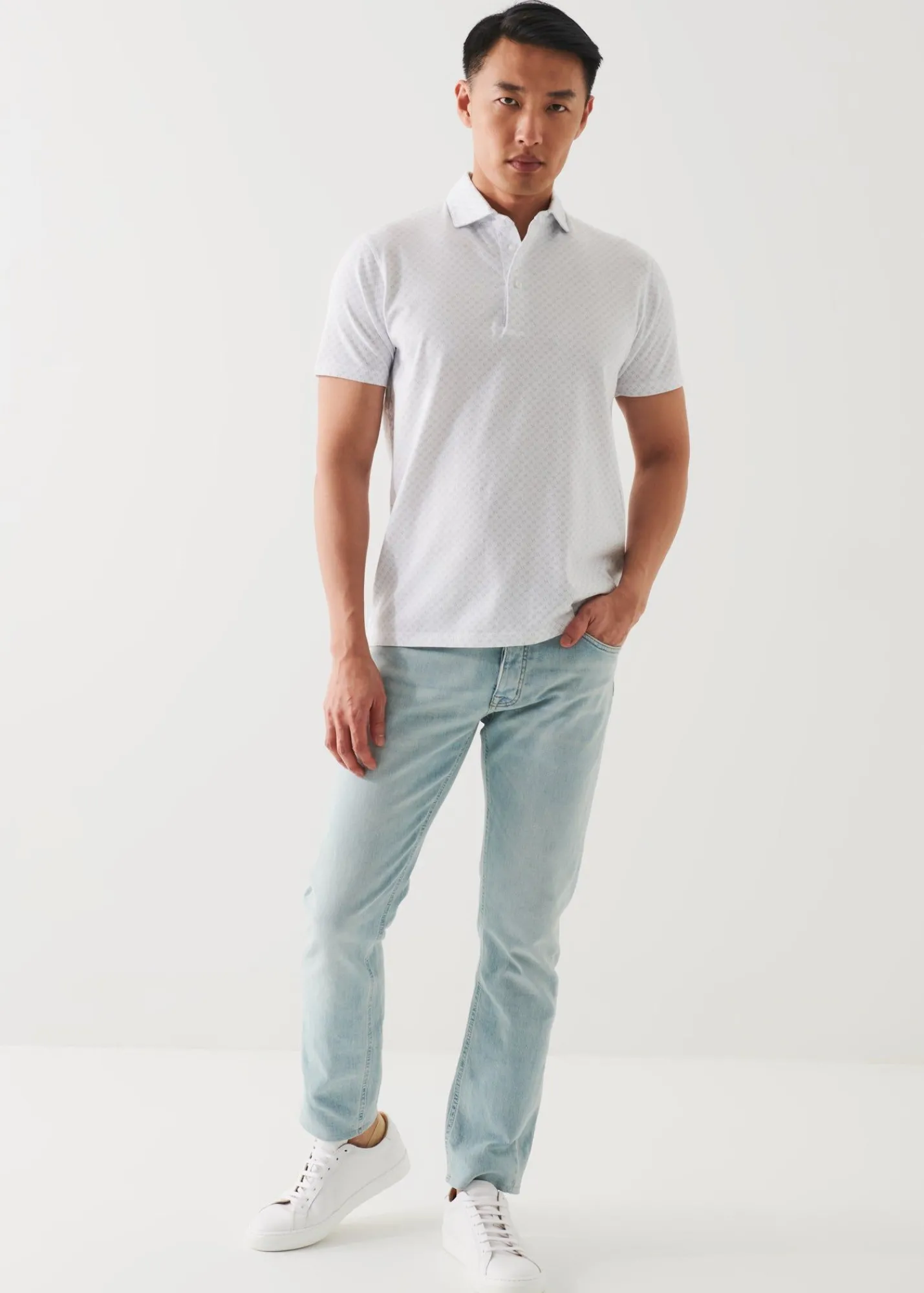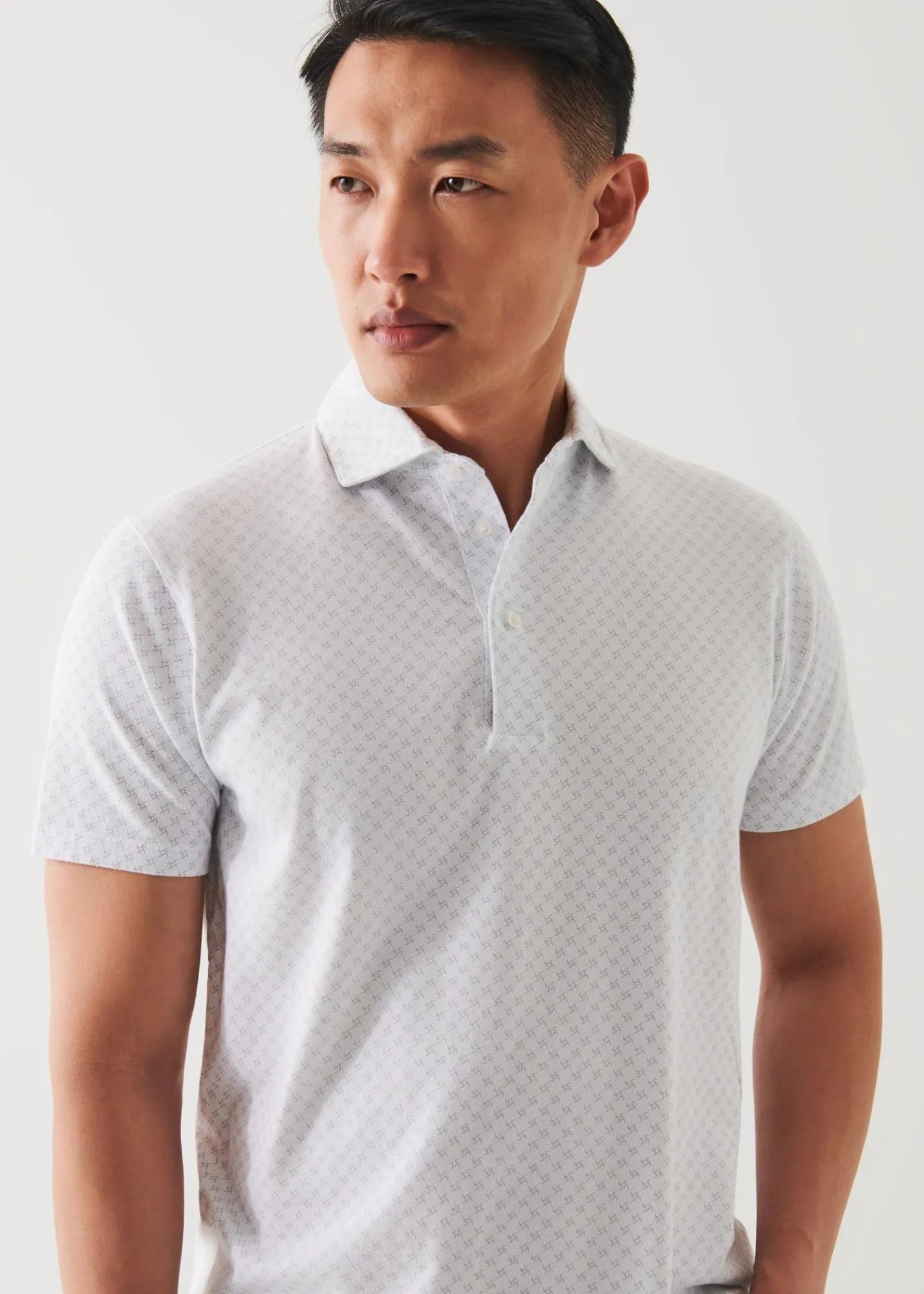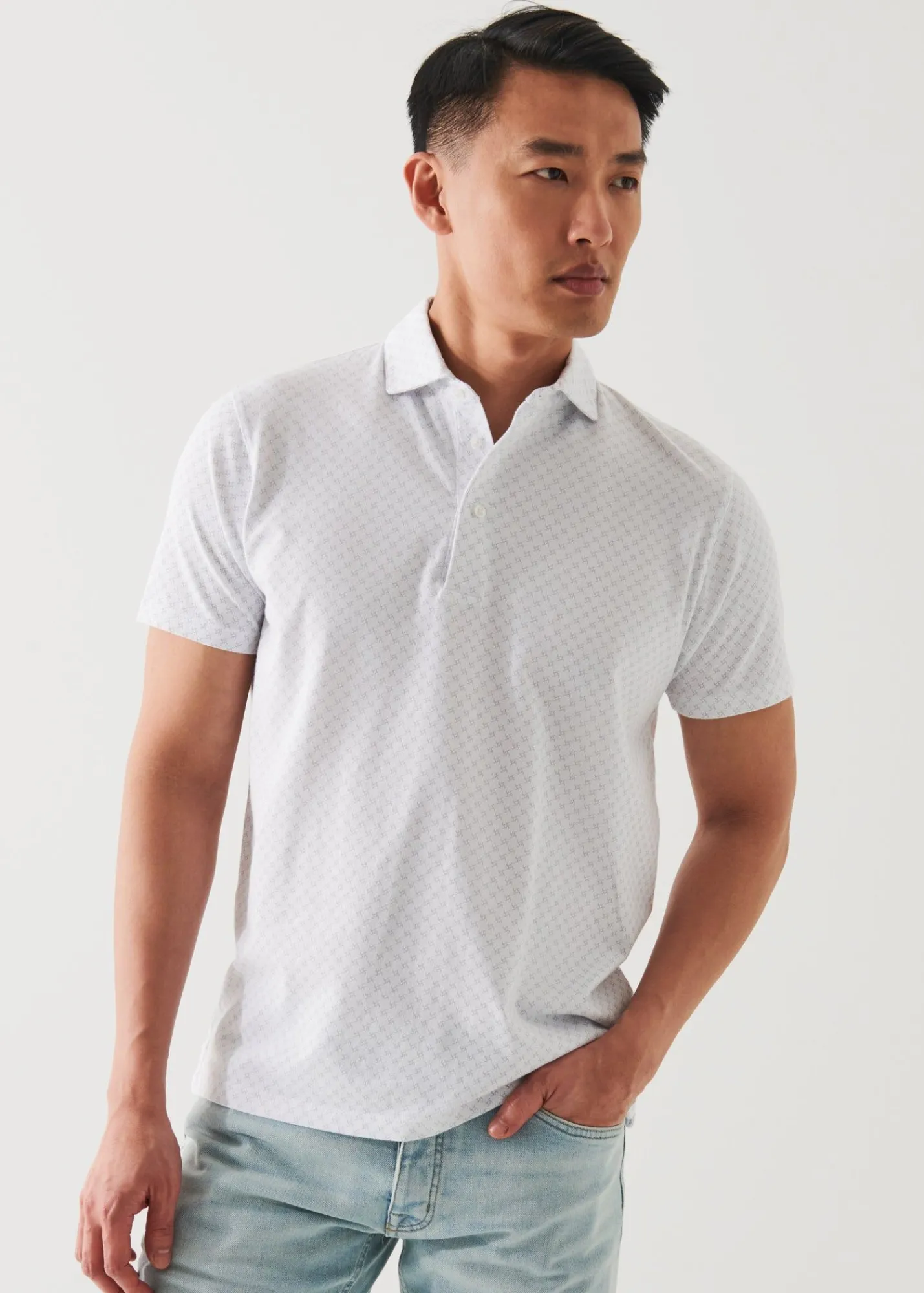 Our Printed Short Sleeve Polo Is Cut From Our Exclusive Peruvian Pima Cotton Stretch Jersey In An Elegant Micro-Neat Pattern. It Has A Luxuriously Soft Hand Feel And The Added Feature Of Stretch For Extra Comfort. This Is An Ideal Addition To The Summer Wardrobe, Pair With A Favourite Pant Or Short.