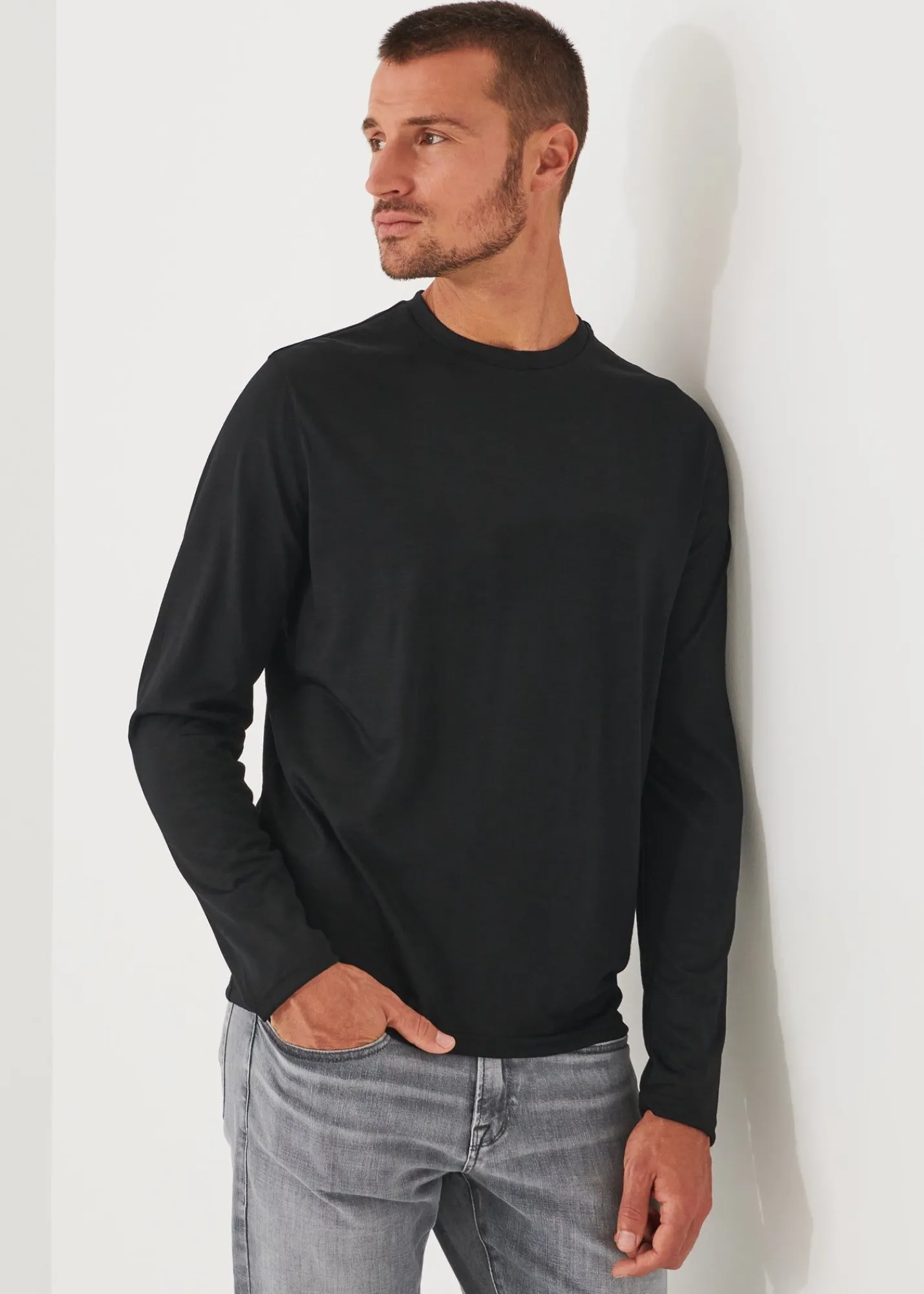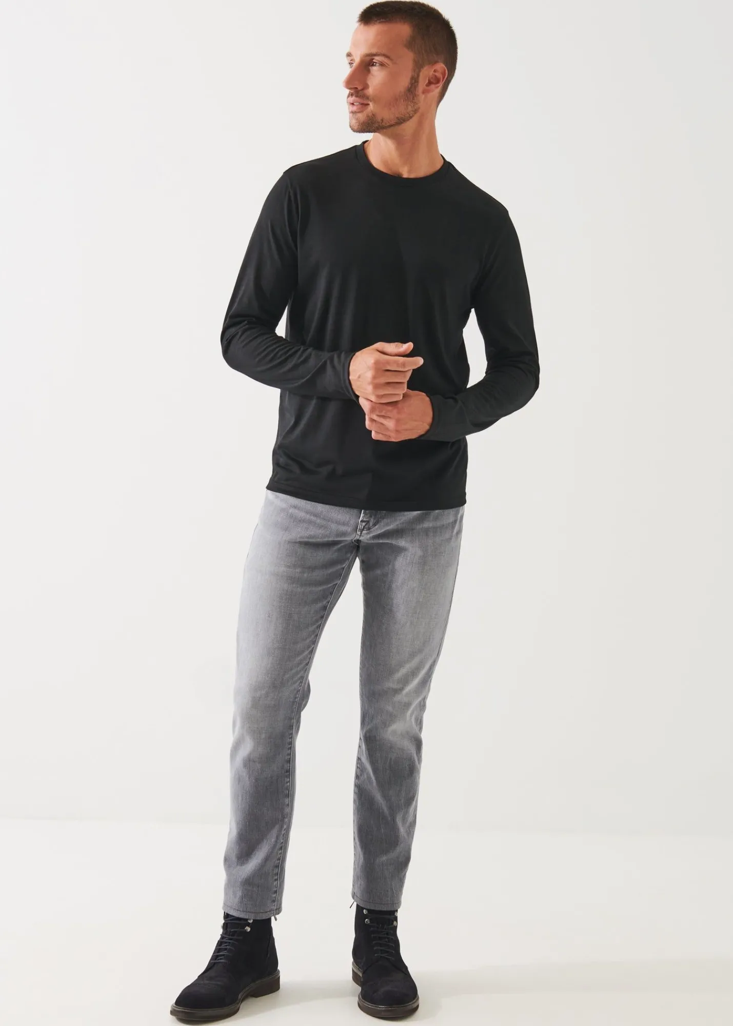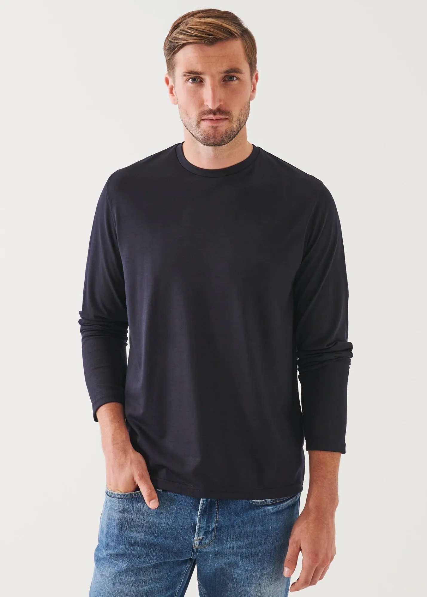 This Made In Italy Long-Sleeve Crewneck T-Shirt Is Cut From A 100% Extra-Fine Merino Jersey Which Has Been Source From Reda, A Highly Reputable Italian Mill. This Fabric Is Highly Breathable, Insulating And Has Anti-Odour Features. Layer This High Quality Garment Under A Tailored Jacket Or Just As Well On Its Own To Create An Elevated Casual Outfit.